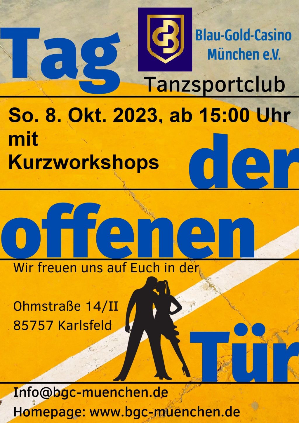 Wir freuen uns bereits in diesem Jahr erneut die Türen öffnen zu können und laden alle Tanzbegeisterte zum Tag der Offenen Tür ein! Besuchen Sie uns am